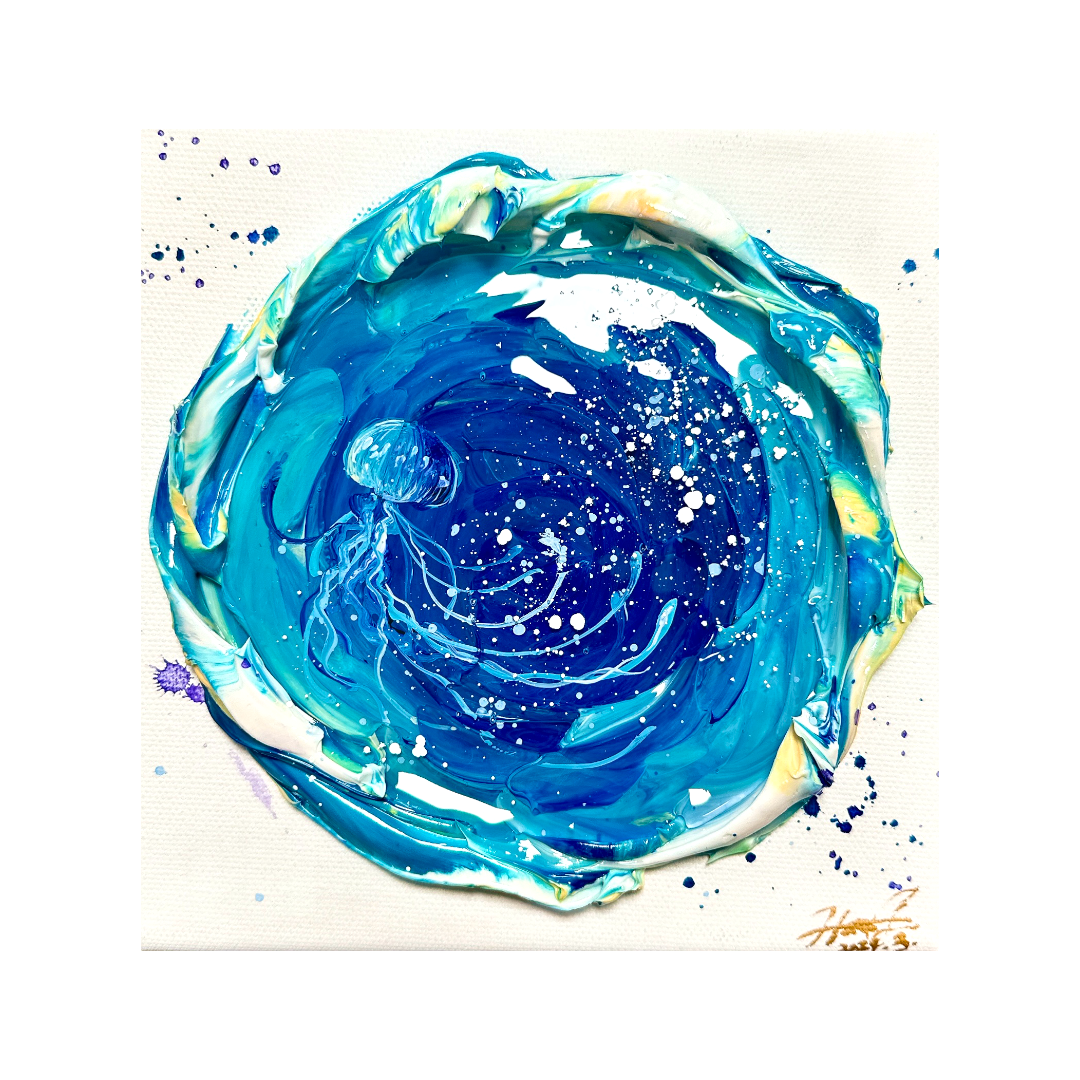 今回はふわふわただようクラゲをモリモリアートで囲ったレジンの海で泳がせてみました。