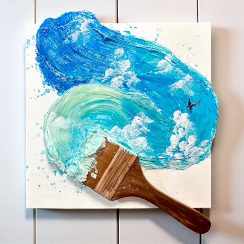 (グラスはメディウムで固定しているので立てても落ちません。そのままでも飾っていただける作品です。)