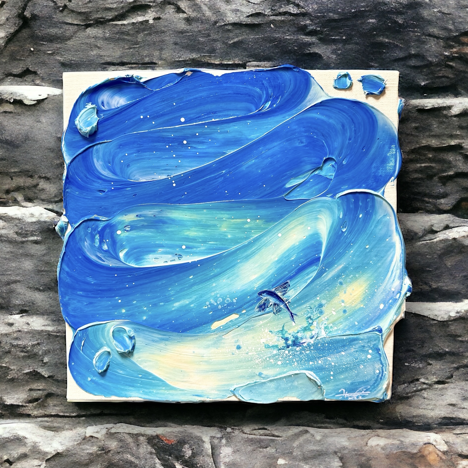トビウオが飛び出す、決して日上がらない絵の具の海は、何度もグラデーションをやり直して生まれました。
