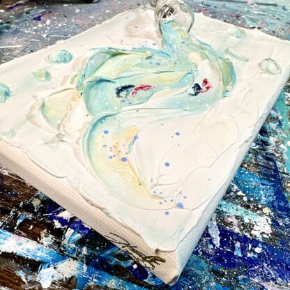 普段は川や池に住む鯉が絵の具の水の中、環境が変わっても一緒に泳ぎ続けています。