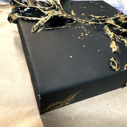 (側面にも描いています。そのままでも飾っていただけるアートです。強くこすると金箔が手につく恐れがありますのでご注意ください)