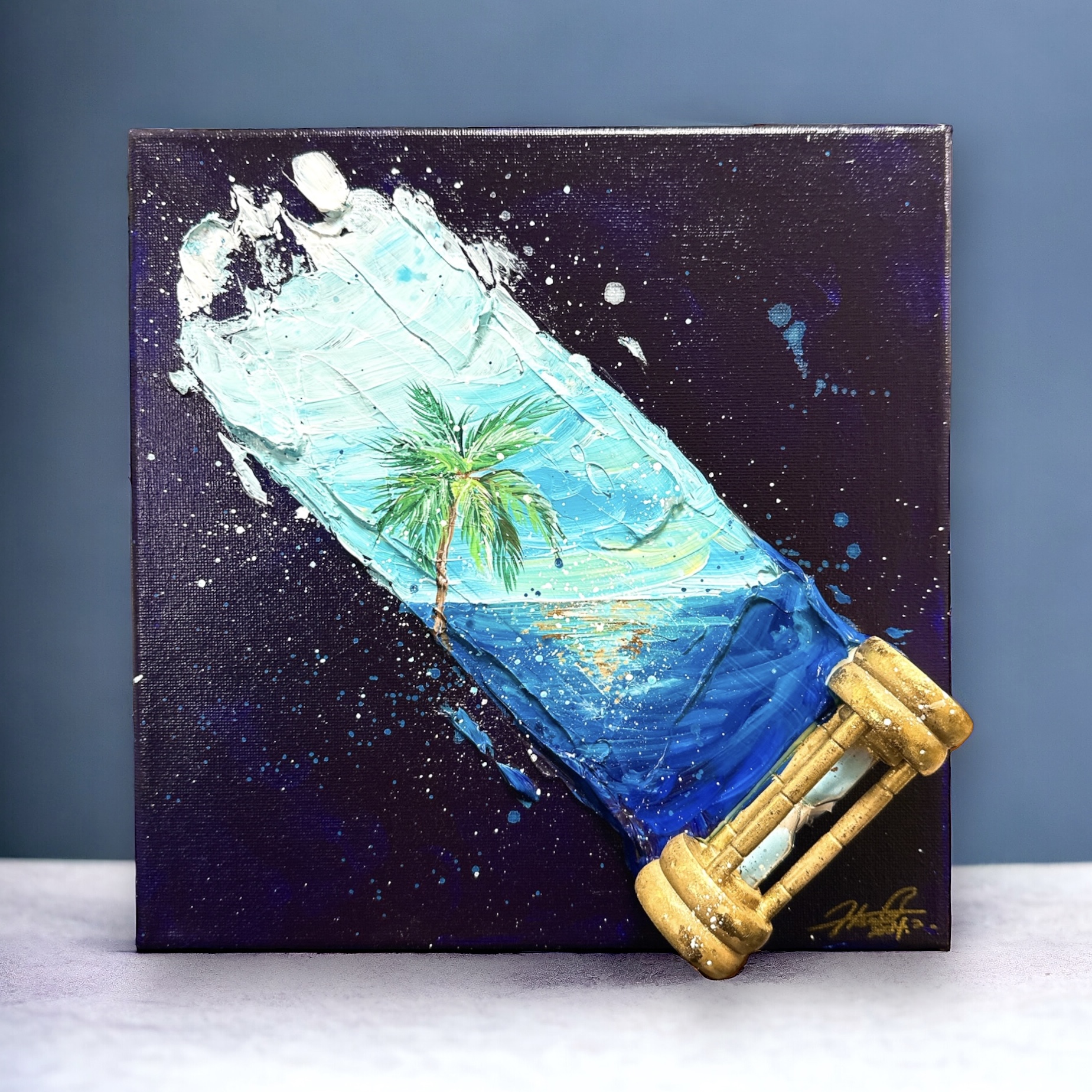 (砂時計はメディウムとアロンアルファで固定しているので立てても落ちません。白い部分は完全に乾くと透明になります。そのままでも飾っていただける作品です。)