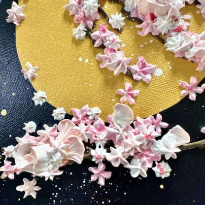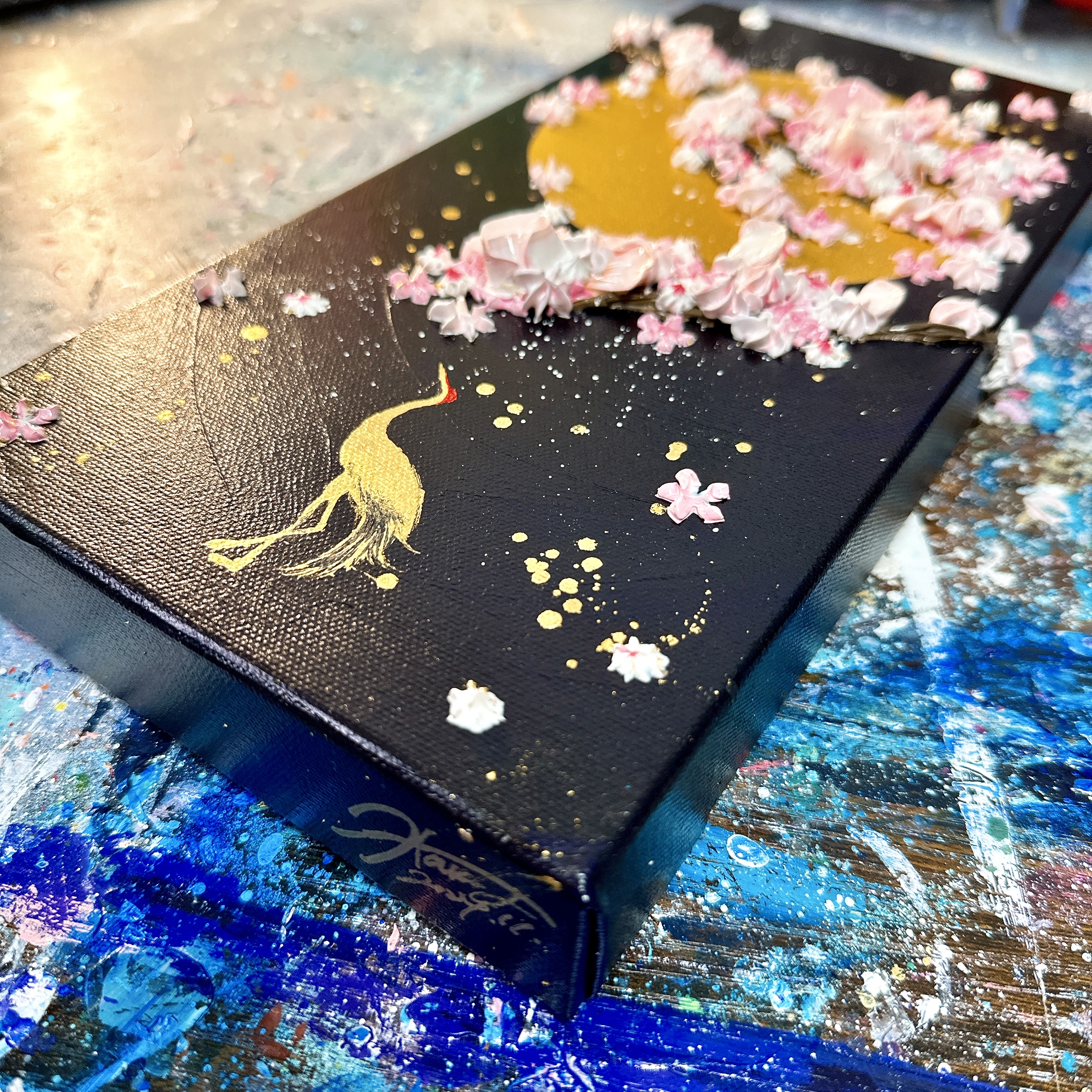 鶴の部分は24kの純金を使い、頭上には満開に咲く花たち。