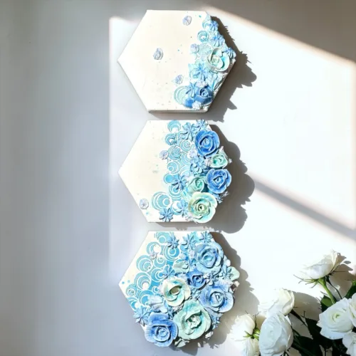 (飛び出しているお花はメディウムで接着していますので立てても落ちません。)
