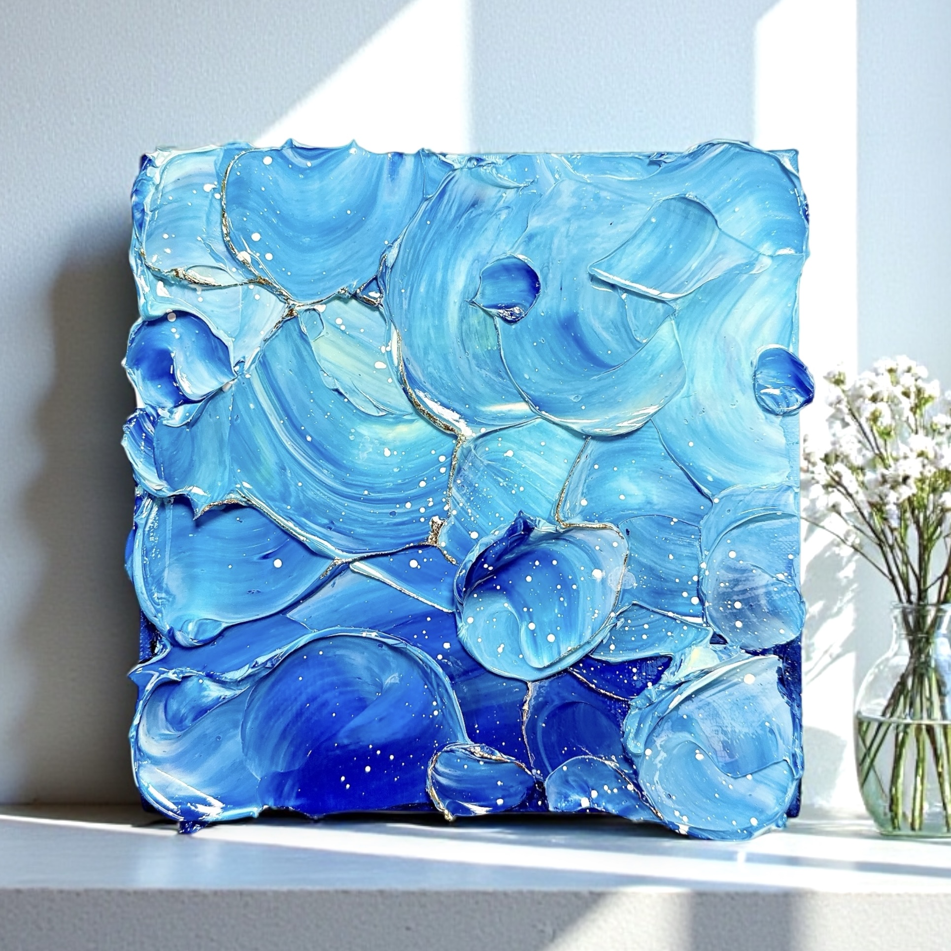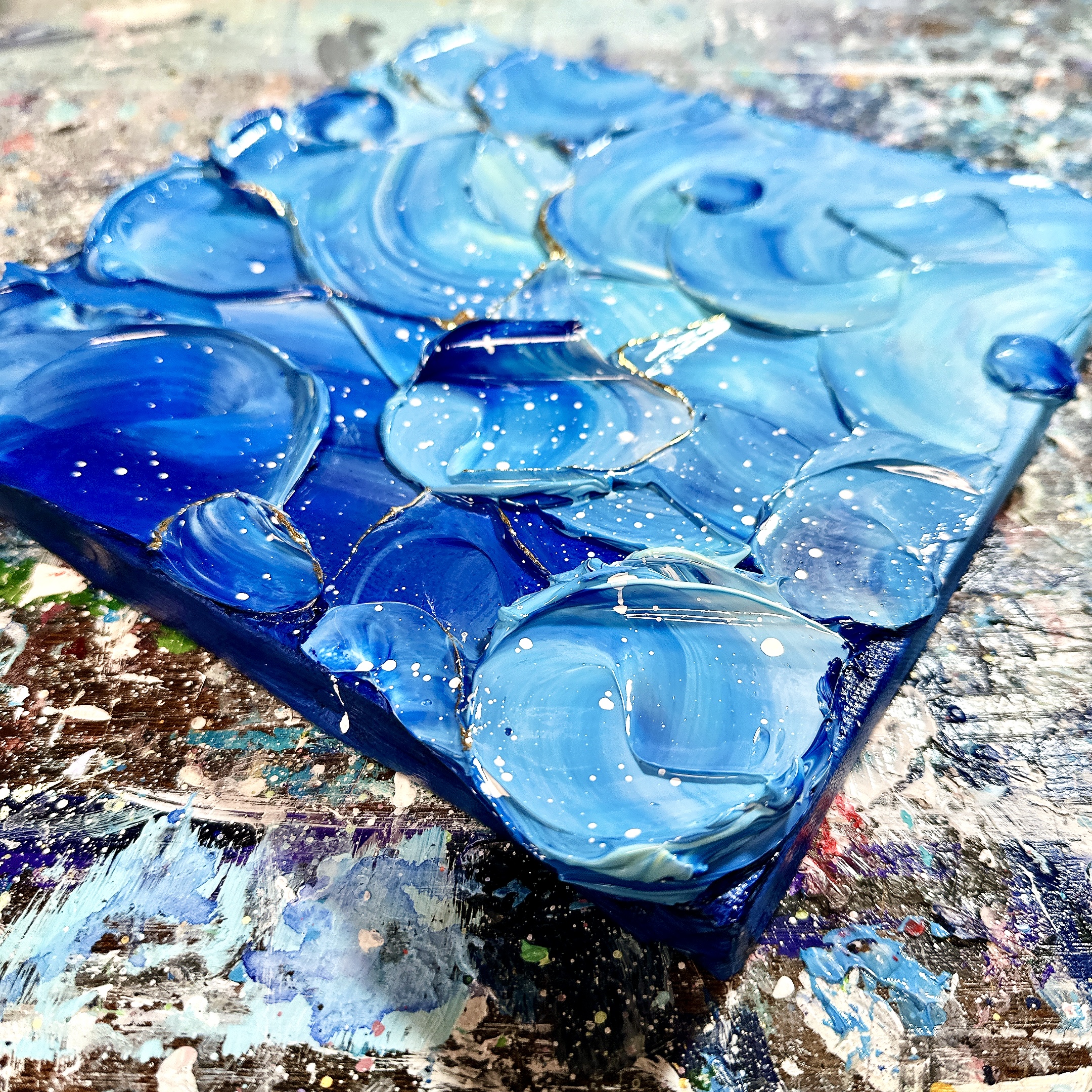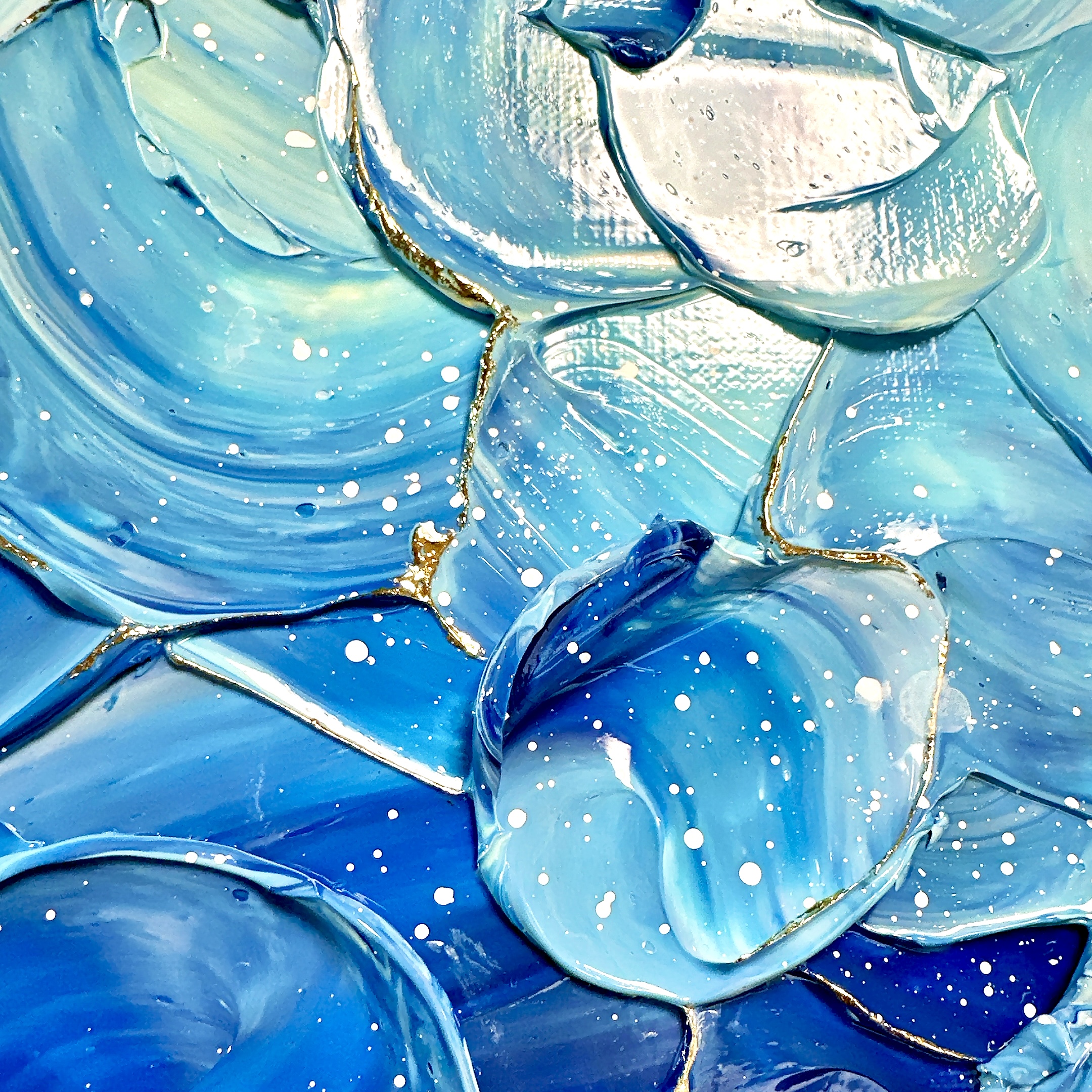 青のモリモリは迷走する思考や感情のブレを、何度も塗り直して表現しました。