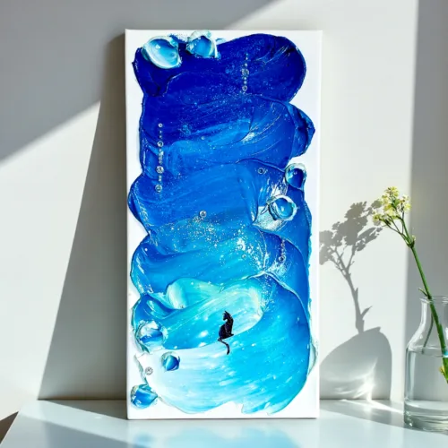 まだ4月ですが早く夏が来てほしい、夏を表す青い絵をたくさん描きたい、という思いを込めました。