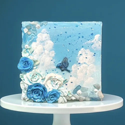 (グラスはメディウムで固定しているので立てても落ちません。そのままでも飾っていただける作品です。)