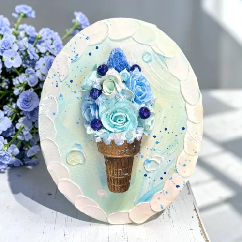 コルクの上に固定された空は、覗き込むたびに気持ちが暖かくなる、あなただけの「持ち運べる青空」になってくれたら嬉しいです。