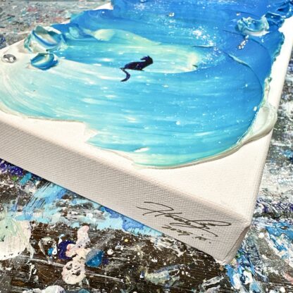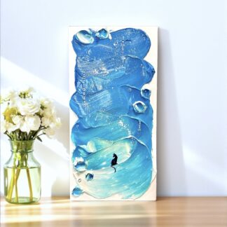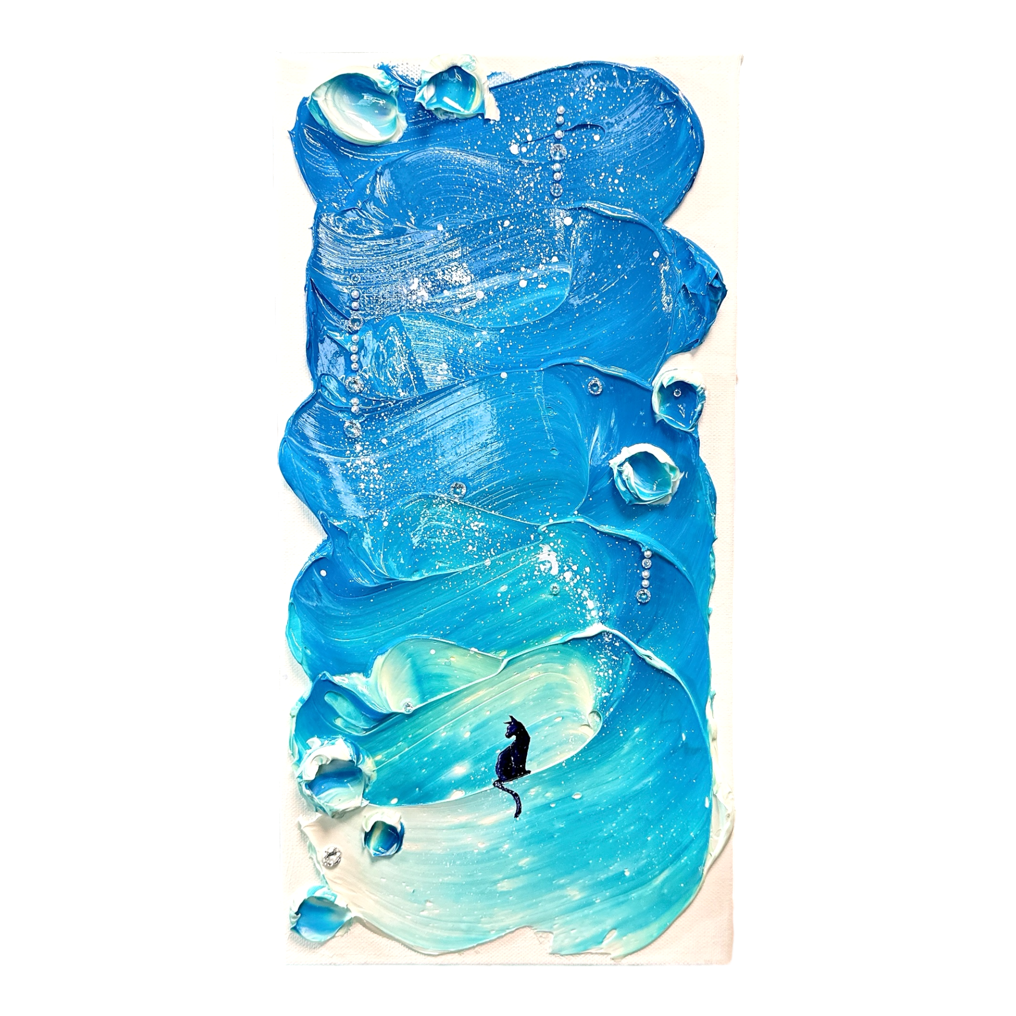 今回はそんな愛らしい猫ちゃんをモチーフに美しい青の世界をモリモリアートで表現した5作品目です。