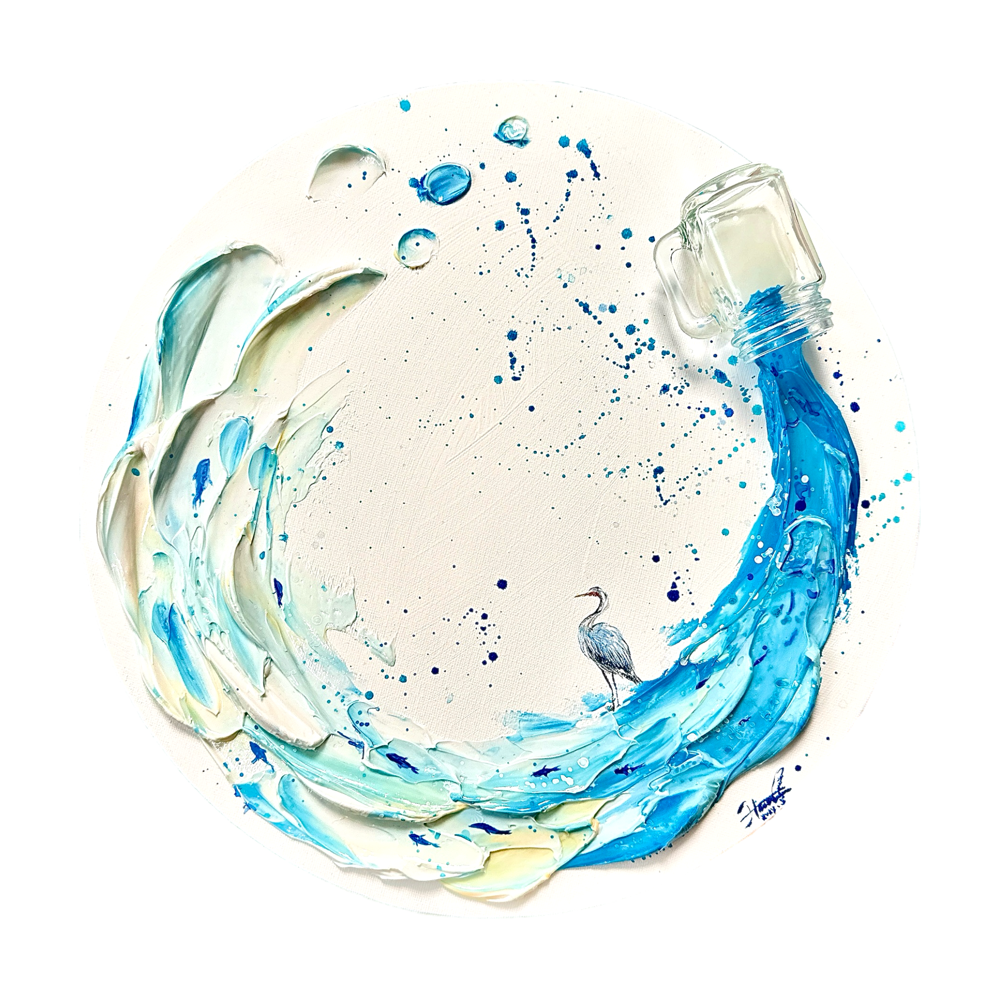 美しい川で泳ぐ魚、その川を生み出すコップ、水色系のグラデーションもうまくいったと感じるお気に入りの1枚です。