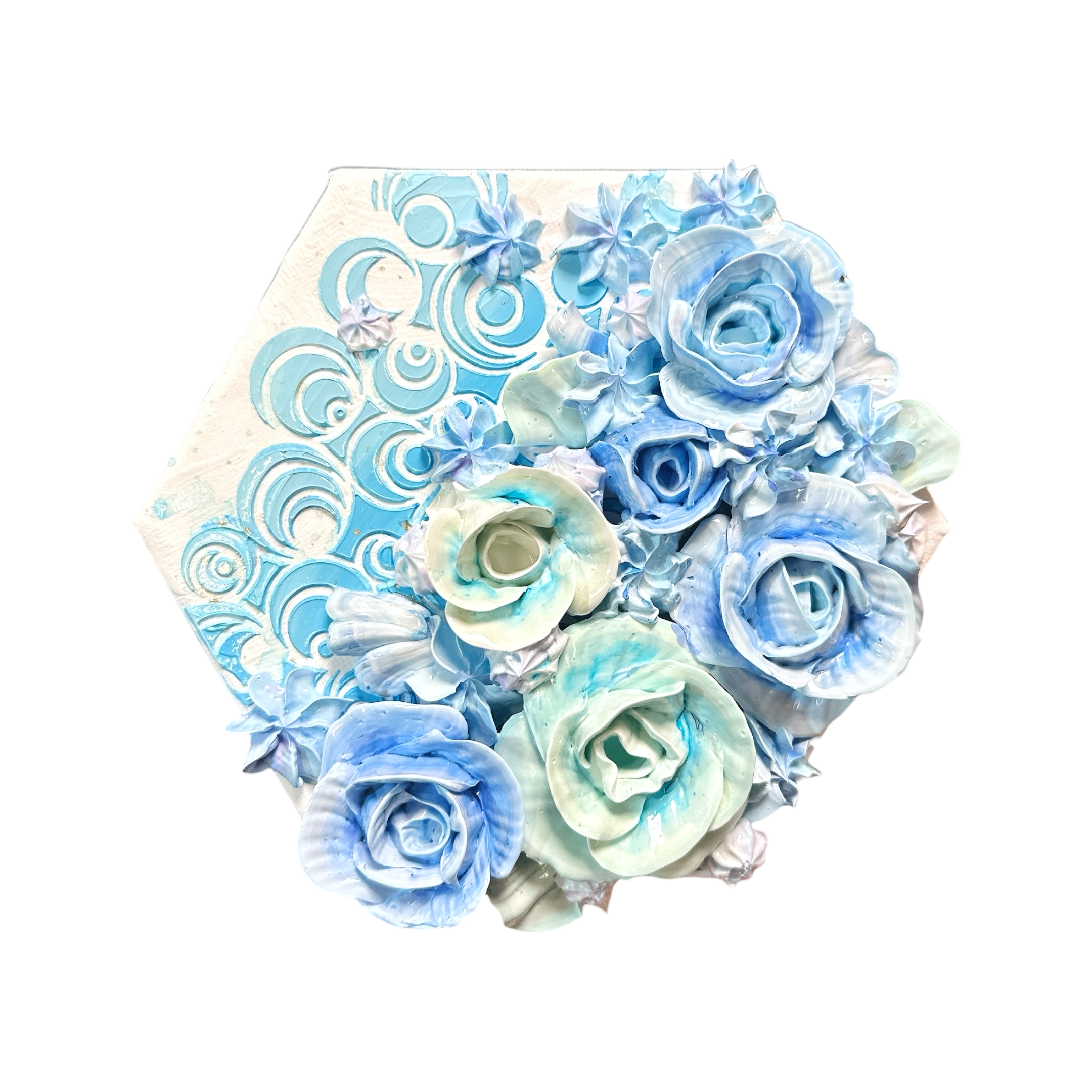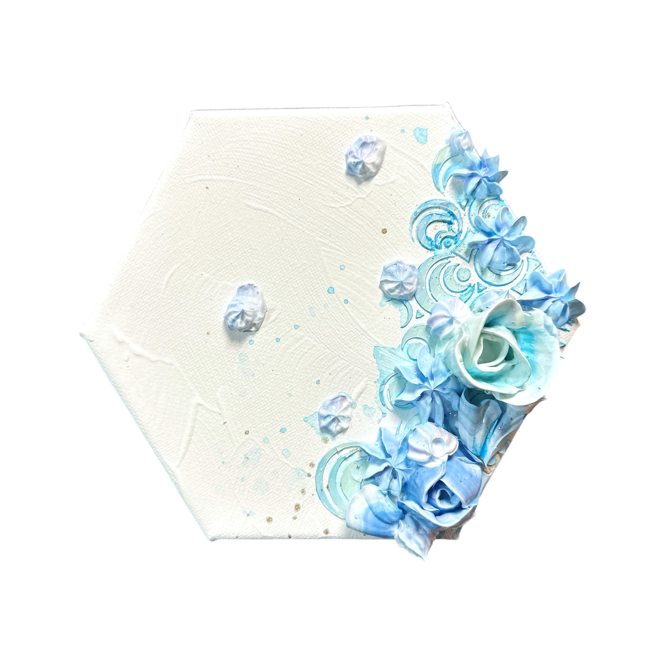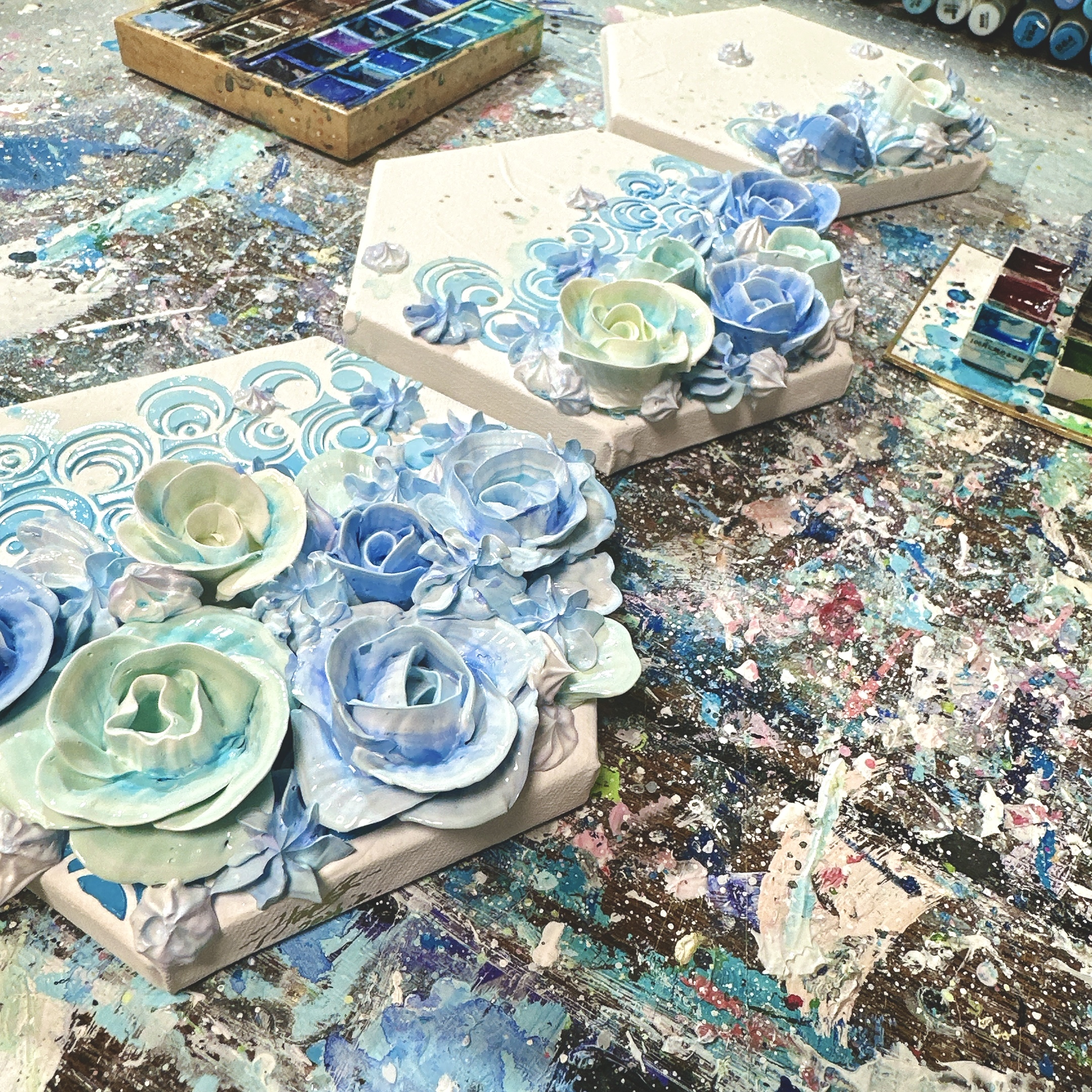 最も安定し、調和を生み出すとされる「六角形」のキャンバスを使用した3連のモリモリアートです。