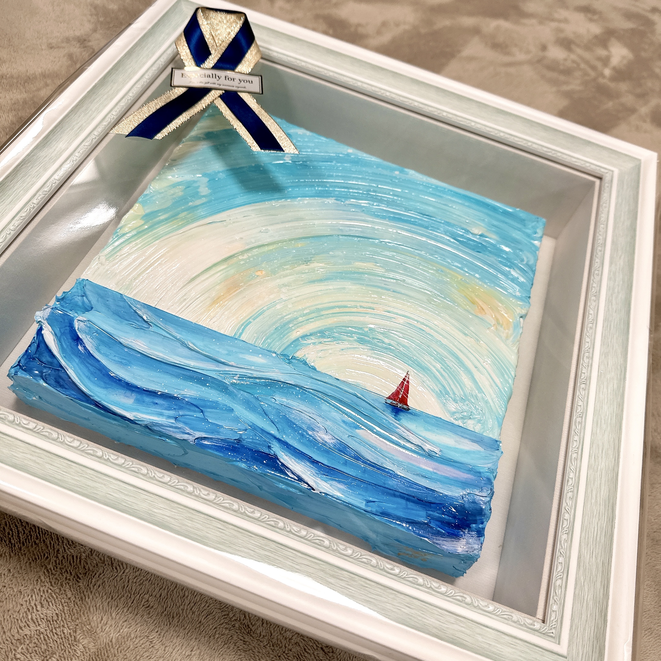 (額付きの作品なのでそのままでも飾っていただけます。キャンバスサイズは25cm正方形でネジで固定しております。)